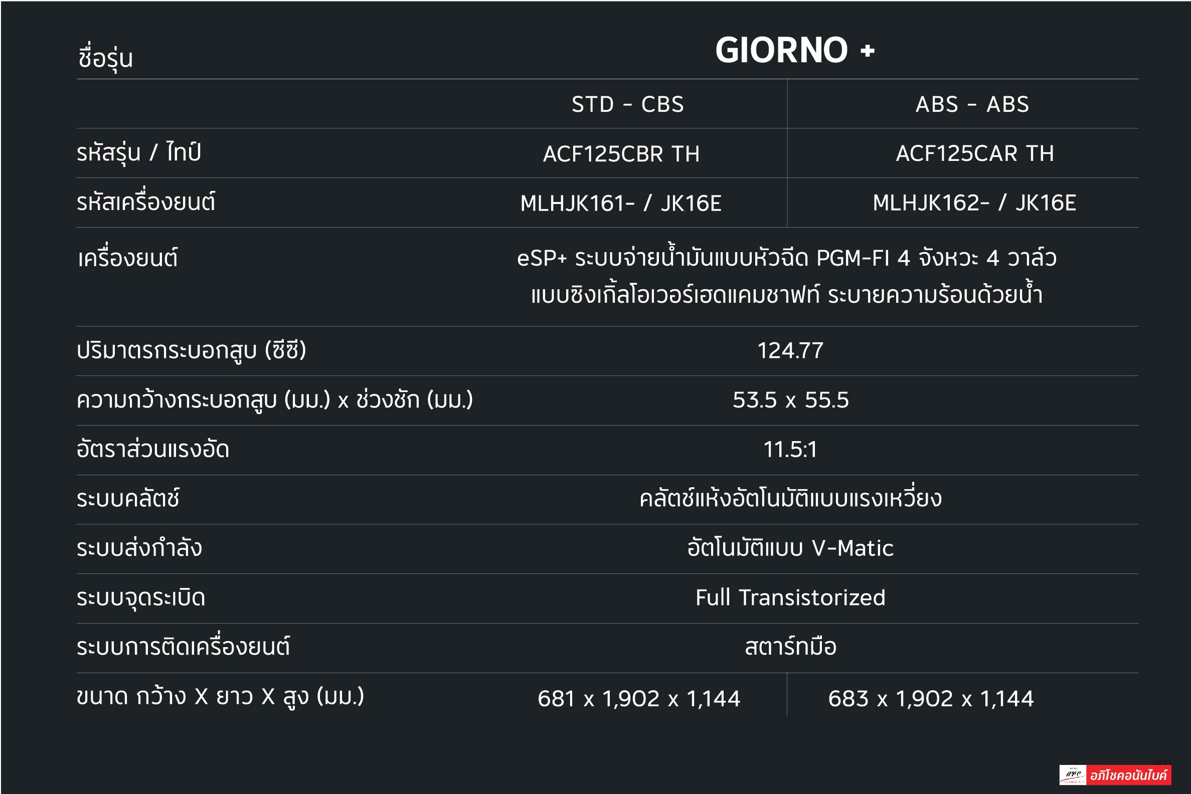 เรามีดูกันว่า Giorno+ ฟีเจอร์และสเปกเครื่องยนต์เป็นอย่างไรบ้าง?