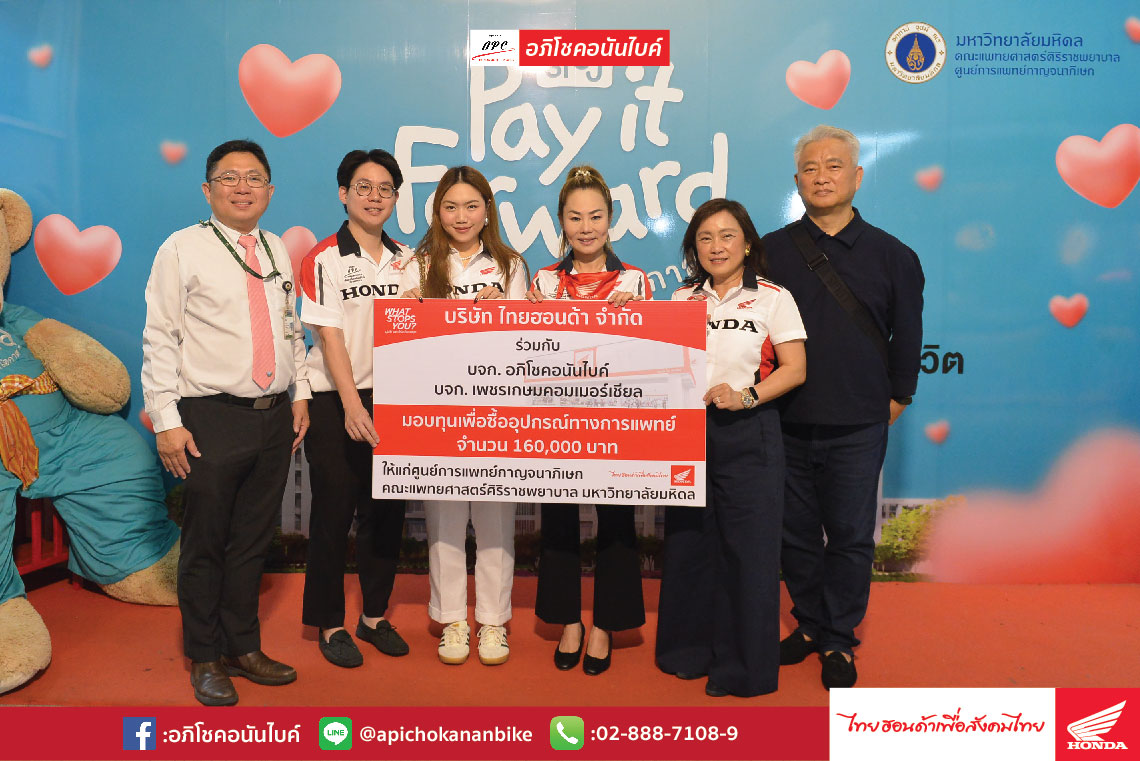 ในวันที่ 15 พฤษภาคม 2567 ผู้บริหาร บริษัท อภิโชคอนันไบค์ จำกัด และ บริษัท เพชรเกษมคอมเมอร์เชียล จำกัด ร่วมกับ บริษัท ไทยฮอนด้า จำกัด ได้สมทบทุนเพื่อซื้ออุปกรณ์ทางการแพย์เป็นเงินจำนวน 160,000 บาท ให้กับ ศูนย์การแพทย์กาญจนาภิเษก รับมอบโดย รองศาสตราจารย์นายแพทย์ธีระ กลลดาเรืองไกร (ผู้อำนวยการ ศูนย์การแพทย์กาญจนาภิเษก)