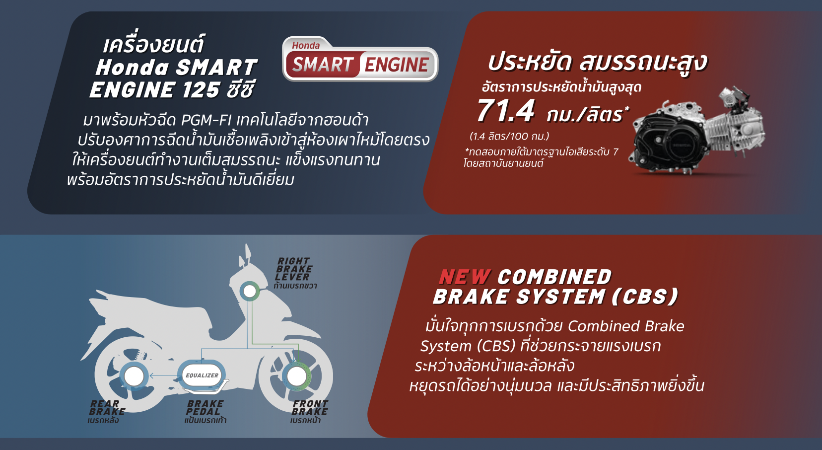1. ระบบ Combined Brake System (CBS) - ที่ช่วยกระจายแรงเบรกล้อหน้าและล้อหลังปลอดภัยมากขึ้น