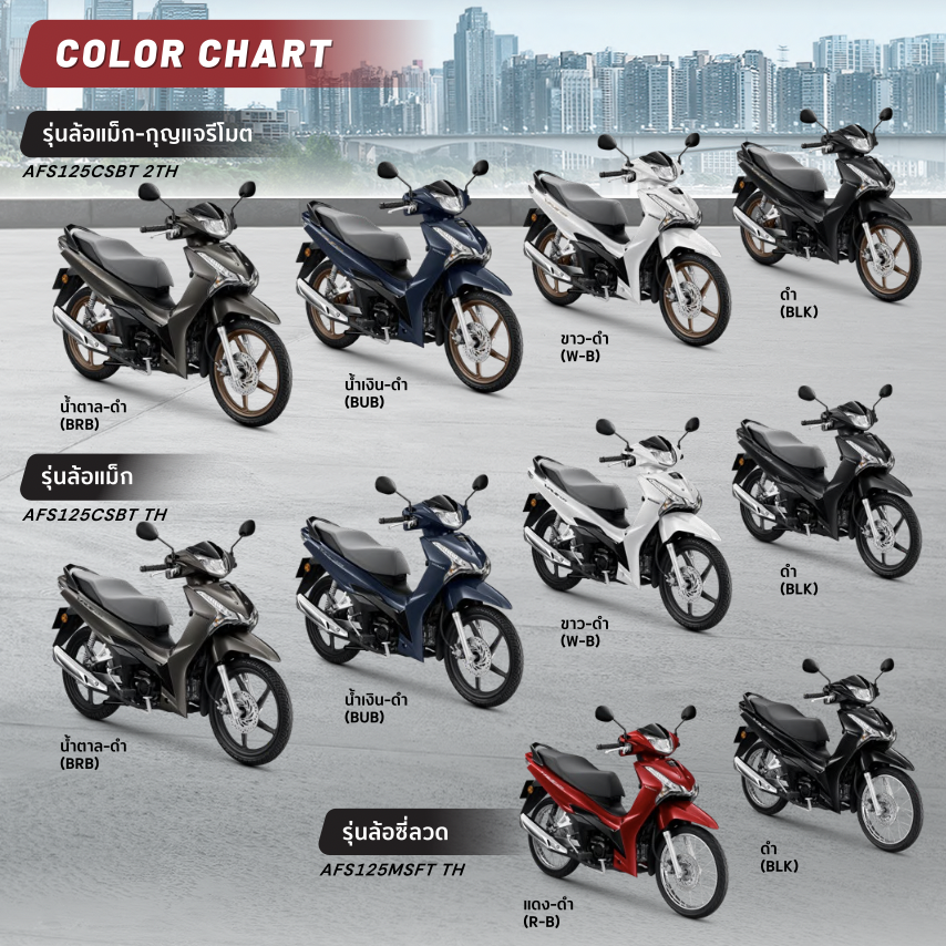 All New Honda Wave125i โฉมใหม่นี้จะมีทั้งหมด 4 รุ่นย่อยด้วยกัน