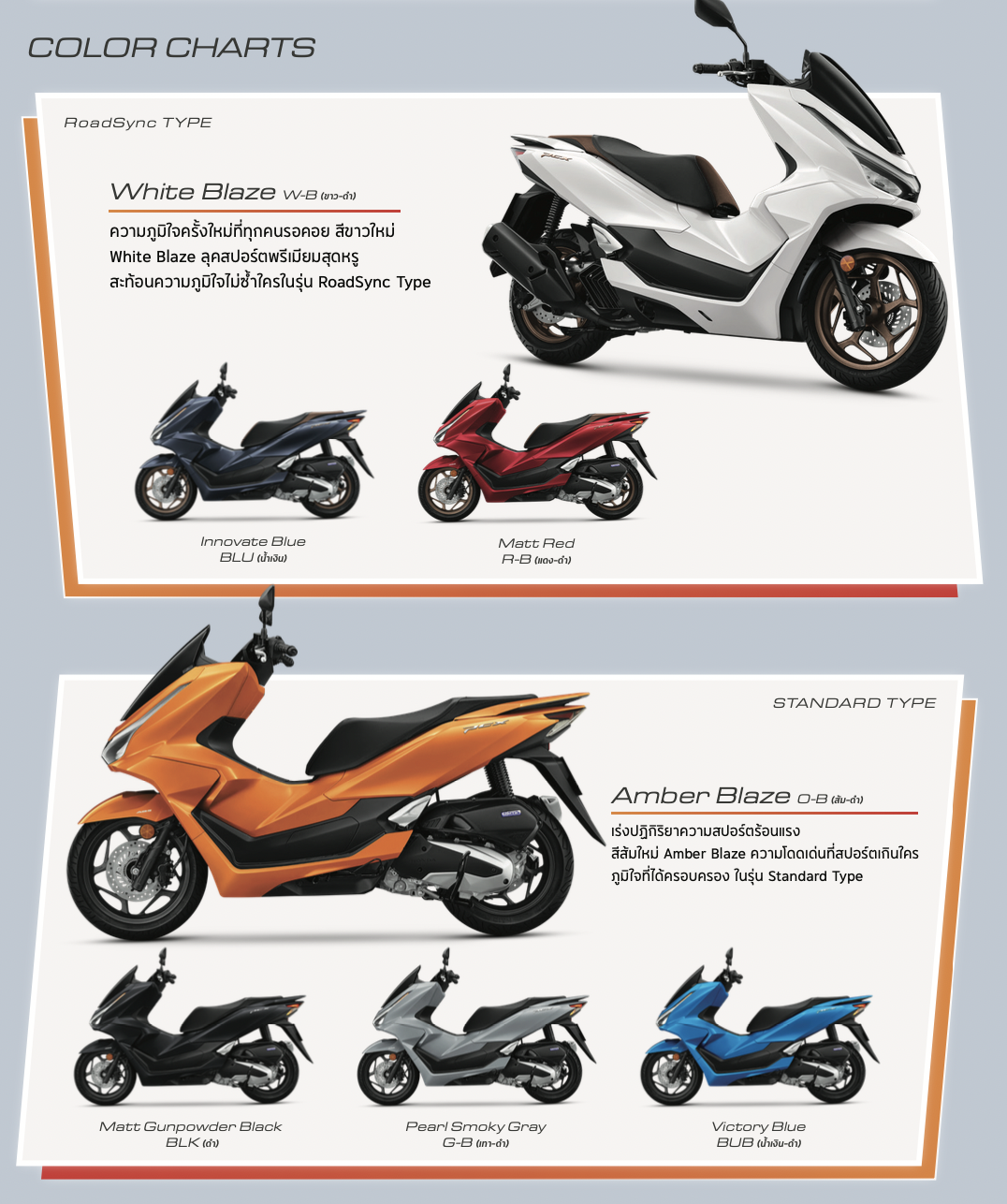วันที่ 3 พฤศจิกายน 2568 บริษัท ไทยฮอนด้า จำกัด ได้ทำการเปิดตัว 2 สีใหม่สำหรับรถจักรยานยนต์ฮอนด้า PCX160 สีส้ม Amber Blazae (Standard Type) และ สีขาว White Blaze (RoadSync Type)