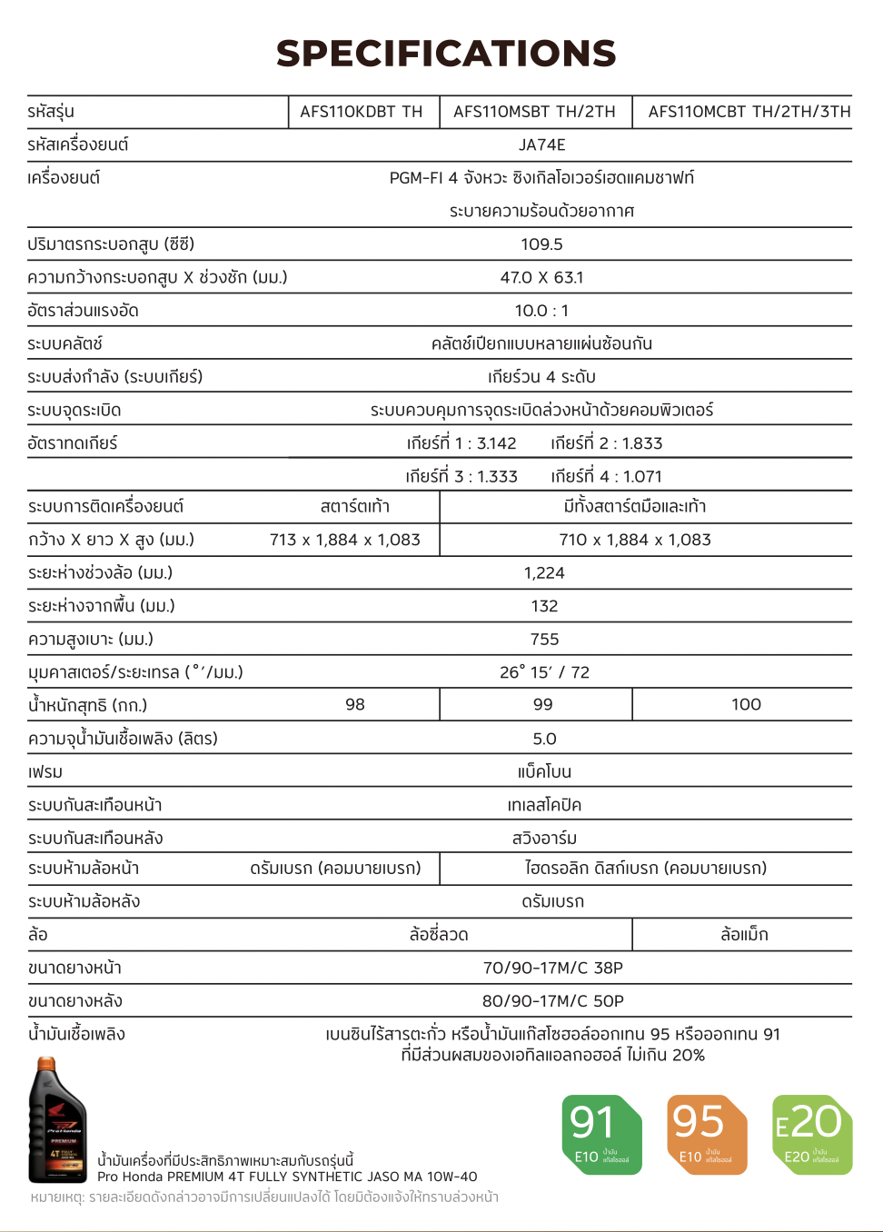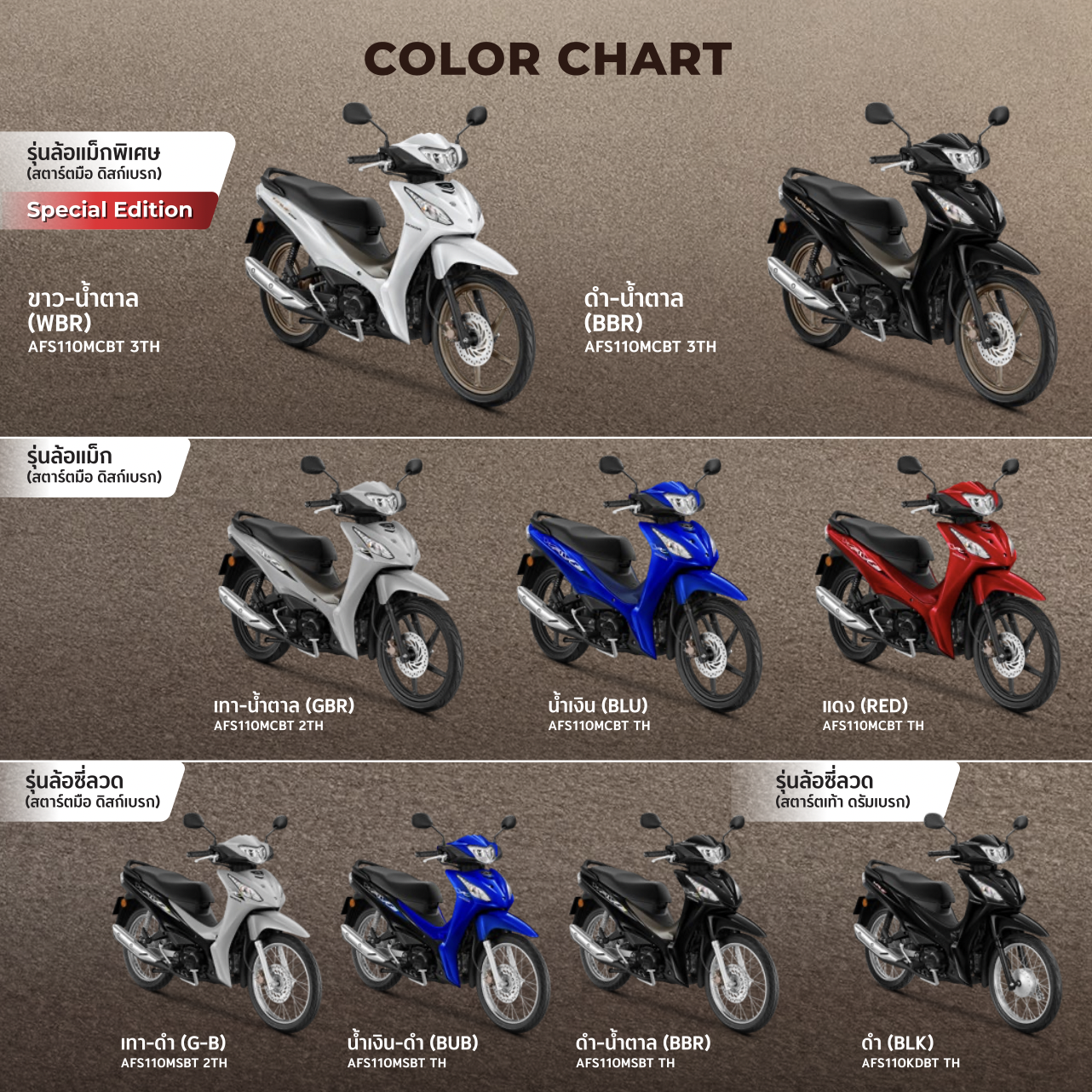 All New Wave110 ปี 2026 มีทั้งหมด 4 รุ่นย่อย