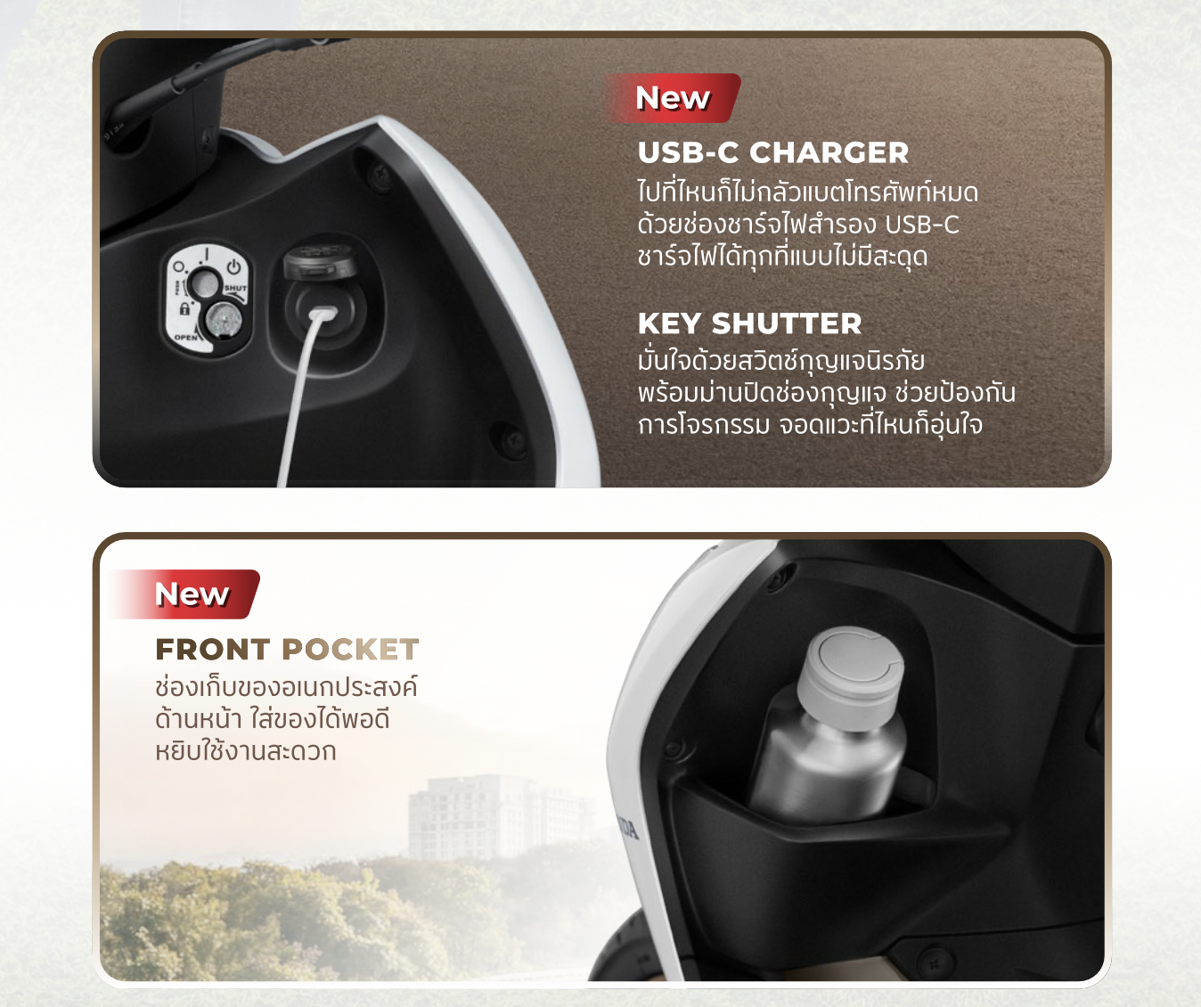 • ช่องเก็บของอเนกประสงค์ด้านหน้า (Front Pocket)
